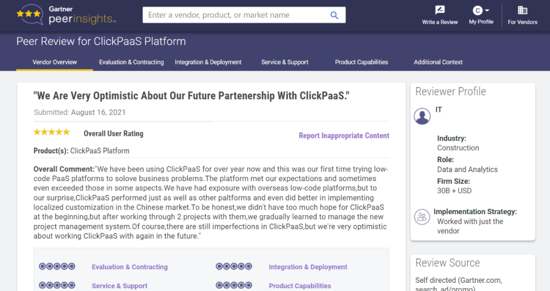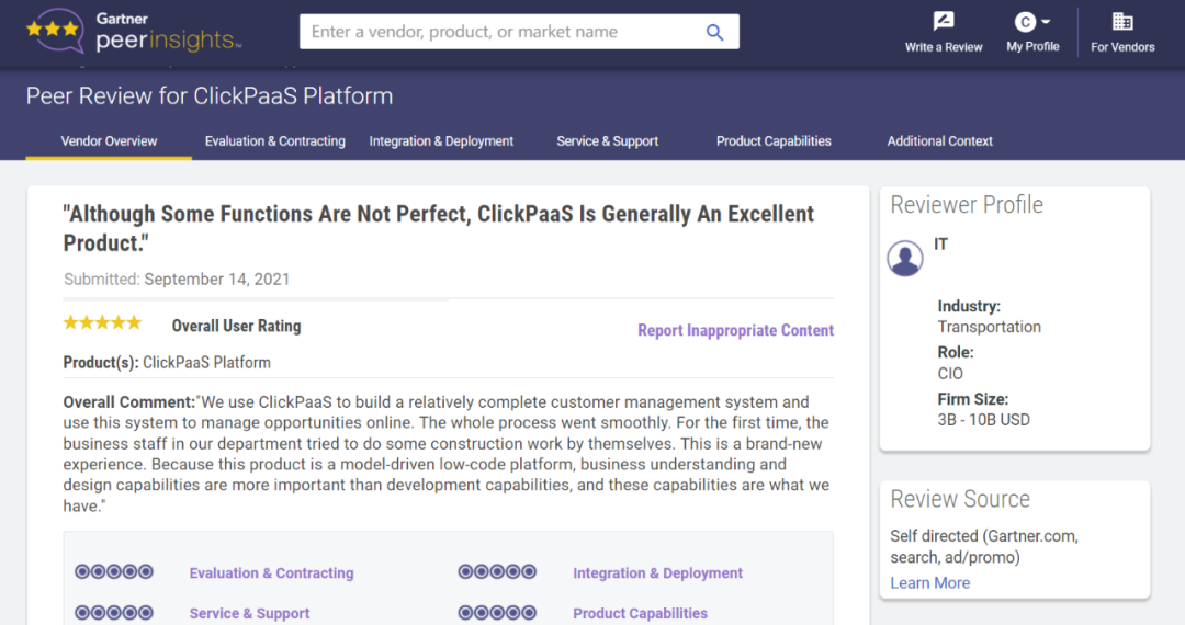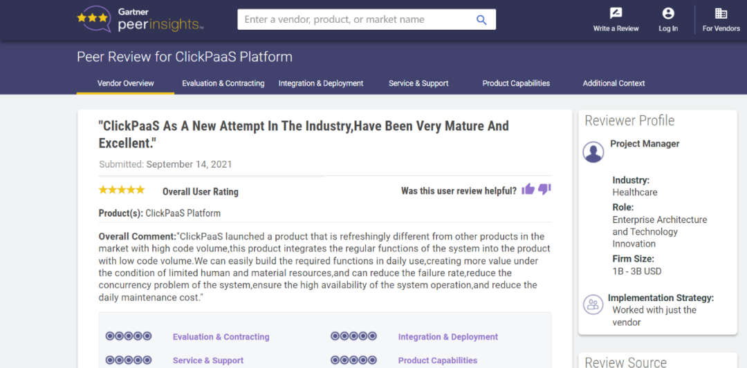 Tips:::【Peer Insights】——用户对企业IT产品和服务发布真实评价的平台。。。目前已有355个市场,,255,000条经过验证的评价。。每一条评价Gartner会针对参评企业营收规模及参评人员信息做验证、、、、评价内容做多维核实。。。